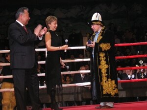 Мелдештин ардактуу мейманы профессиналдык бокс боюнча дүйнөнүн абсолюттук чемпиону Константин Цзю президент Курманбек Бакиевге кол тамгасы менен бокс колкабын тартуулады. Өлкө жетекчиси ага жооп кылып Констинтинге калпак кийгизип, асемдүү чепкен жапты.