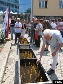 Босния-Серб согушун ардагерлери Босниянын курамындагы Серб Республикасында Байдендин визитине каршы шейшемби күнү демонстрация уюштурушкан.