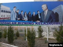 Президент Каримовдун сүрөтү түшүрүлгөн жарнаме.