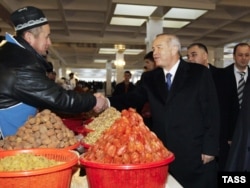 Президент Ислам Каримов Самарканддын Суйоб базарыда. 2009