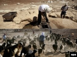 Келгин жөөт(жогоруда) жана бедуин койчу(төмөн жакта) Иерусалимдин түндүк ныптасындагы Бней Адам конушунун четинде.