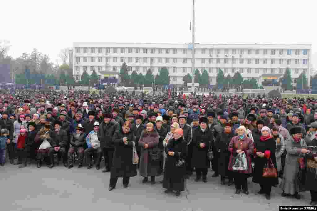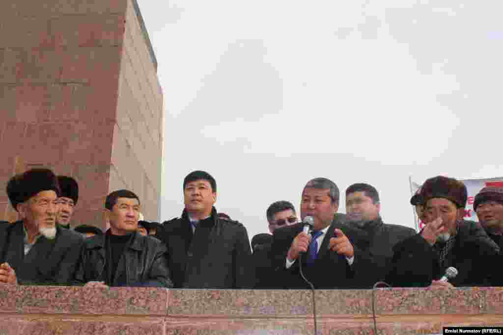 Бүгүн Ош шаарынын борбордук аянтында мурдагы мэр Мелис Мырзакматовду колдогон митинг өттү. Митингге 10 миңге чукул киши катышты. Аларга Папан айылынан 20дан ашуун атчан кошулду. Митингге 2 айга камакка алынган "Ата-Журт" партиясынын депутаты Акматбек Келдибековдун колдоочулары да кошулду. (ErN/MTo)