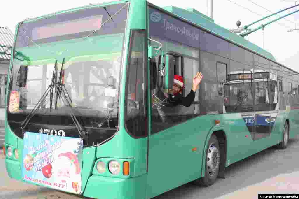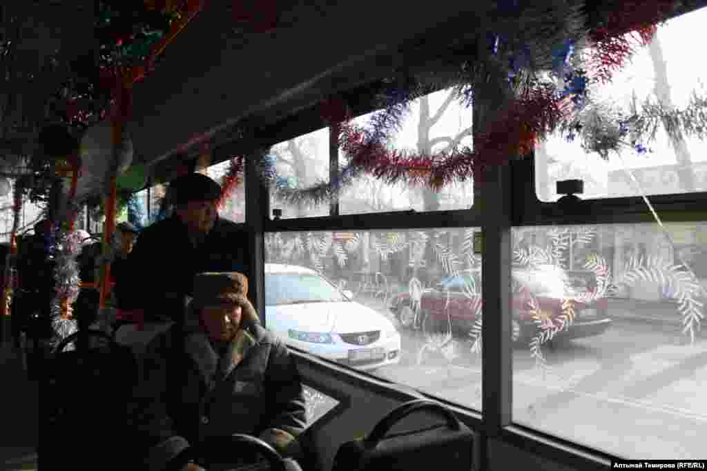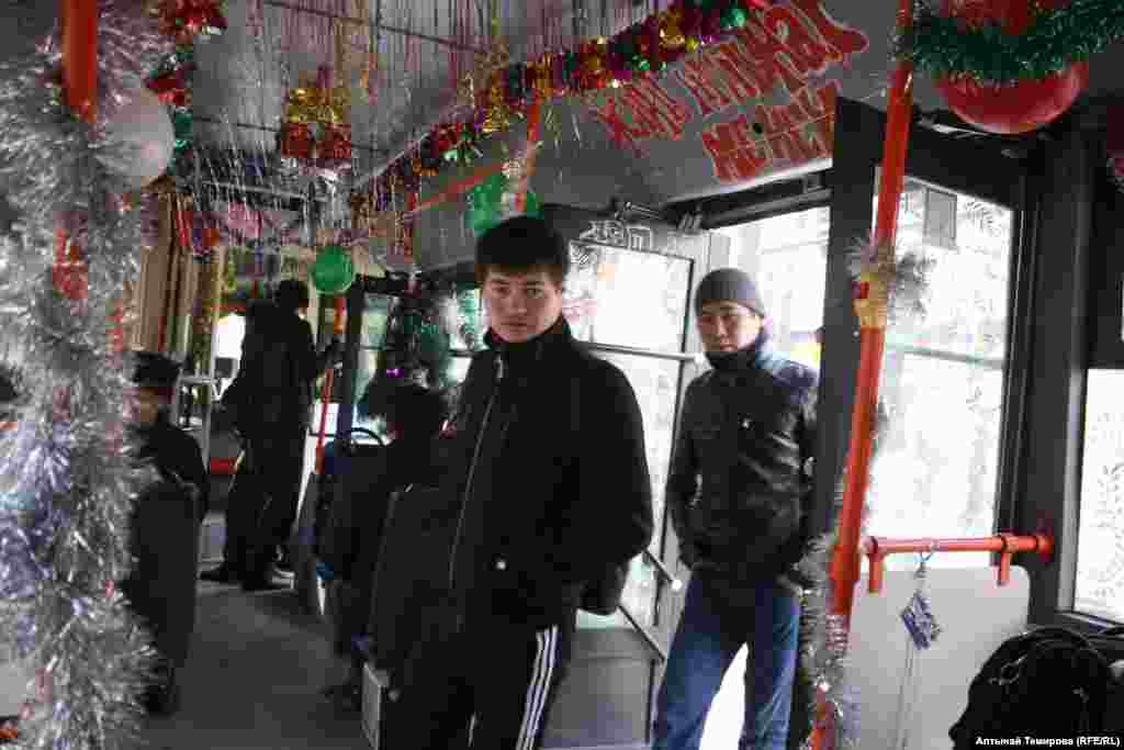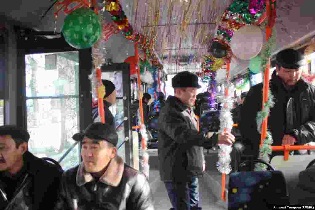 Жаңы жылга карата борбордогу №8 троллейбусту айдоочу Бакыт Өмүралиев шериги экөөлөп кооздоп чыккан. Бакыттын айтымында, транспортко илинген жасалгалар менен оюнчуктар жүргүнчүлөрдүн маанайын көтөрүп, бир эсе таң калтырууда.