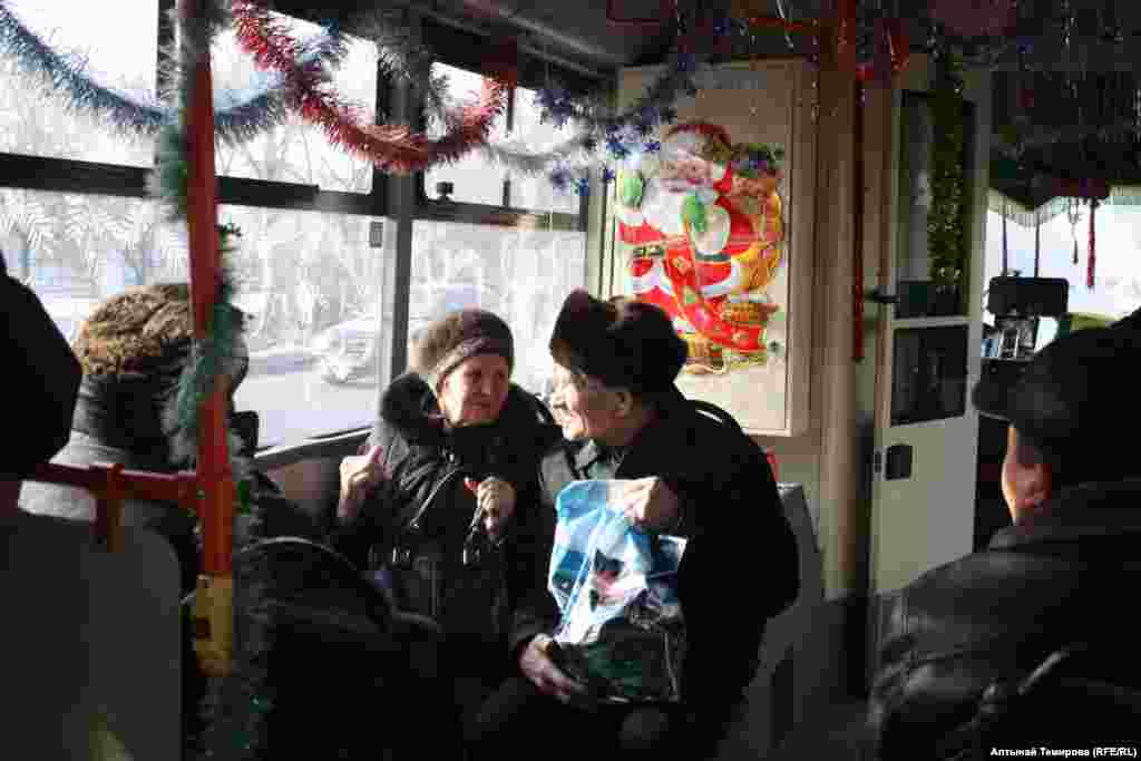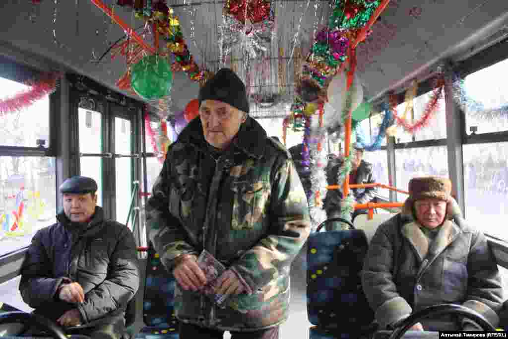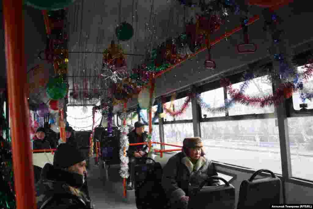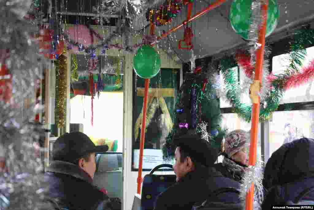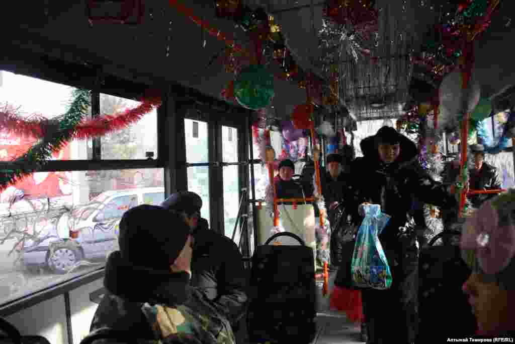 Жаңы жылга карата борбордогу №8 троллейбусту айдоочу Бакыт Өмүралиев шериги экөөлөп кооздоп чыккан. Бакыттын айтымында, транспортко илинген жасалгалар менен оюнчуктар жүргүнчүлөрдүн маанайын көтөрүп, бир эсе таң калтырууда.