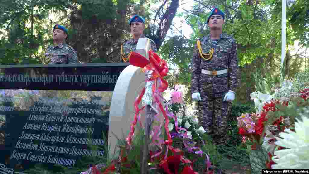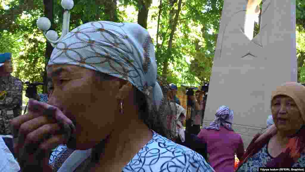 Ошто жергиликтүү бийлик өкүлдөрү жана коогалаңда каза болгондордун жакындары “Эненин көз жашы” монументинин алдында 2010-жылдагы Июнь коогасынын курмандыктарын эскеришти. Монументке гүлчамбарларды коюшуп, курман болгондорго багыштап куран окушту.