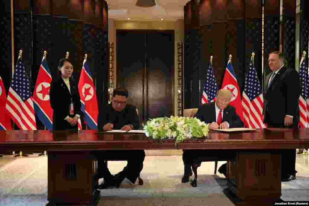 АКШ президенти жана Түндүк Кореянын лидеринин биринчи жолугушуусу 12-июнда Сингапурда өттү.