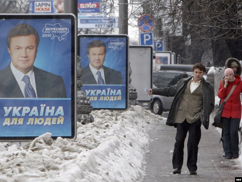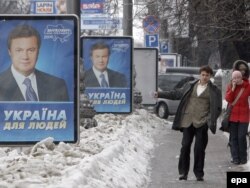Президенттикке талапкер Виктор Януковичтин сүрөтү түшүрүлгөн палкат. Киев. 1-февраль 2010