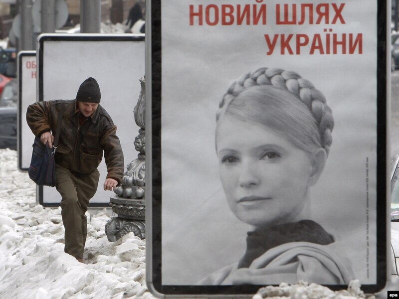 Президенттикке талапкер Юлия Тимошенко үчүн добуш берүүгө чакырган плакат. Киев. 1-февраль 2010