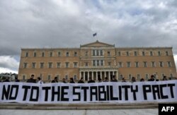 Грек өкмөтүнүн сарамжалдуулукка өтүү саясатына каршы демонстрация. Афины. 11-февраль 2010