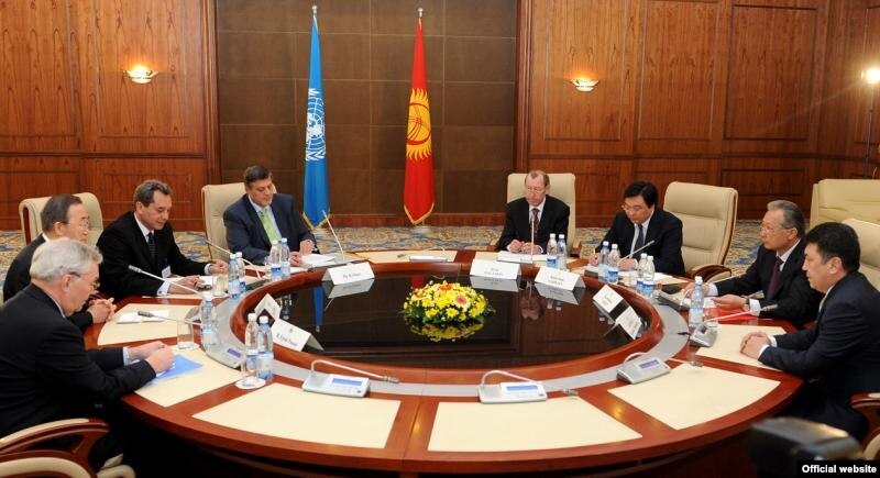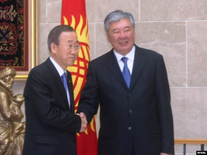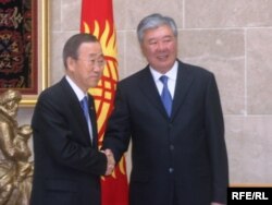 Кыргызстанга бир күндүк иш сапар менен келген Улуттар Уюмунун баш катчысы Бан Ги Мун эң оболу өлкө президенти К.Бакиев менен жолугушту. Баш катчы Кыргызстандын өкмөтү – адам укуктарын сактоонун эл аралык милдеттерин карманышы керектигин кыргыз президентинен өтүнгөнүн журналисттерге маалымдады: