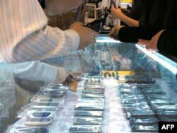 Бээжиндин жайма базарында эң мыкты делген техниканын "көчүрмө нускалары", анын iPhonдор сатылат. 28-октябрь 2009