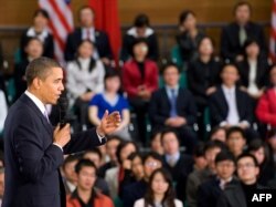 Президент Барак Обама Шанхайда студенттер менен болгон кездешүүдө АКШ жана Кытай өткөндүн сабактарын эске алышса өз ара тирешүү болбосун айтты.
