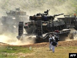 Пакистан аскерлери Бунер аймагына чектеш Умар Абад районунда талиптер менен согушуп жаткан учур. 29-апрель 2009