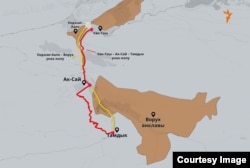 Кызыл түс менен көрсөтүлгөнү жаңы курулган жол.