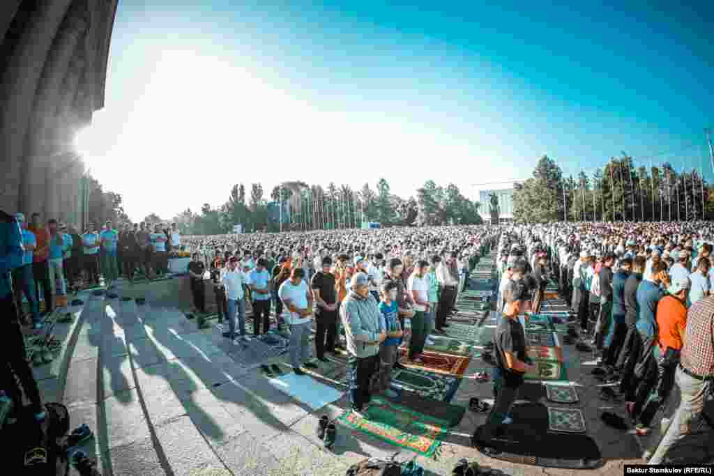 Майрамдык айт намазы Бишкектеги Эски аянтта окулду. Ага шаардын тургундары жана коноктору катышты.