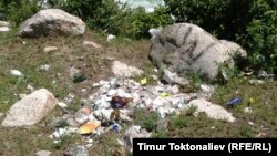 - Мына, бул жакка отурушкан, очок жагышкан. Кетип жатып акыр-чикирин албай кетишкен. Суунун жээгине чейин келип ичип-жеп, артканын ушинтип калтырып кетишет же арыктагы сууга ыргытышат. Ушундан көрө мүшөккө салып, жол жээгине таштап коюшса, айыл тургундары алып кетмек да. Эс алуучулар аны да кылбай жатышпайбы.