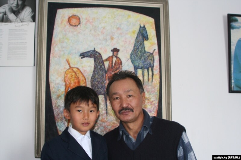 - Биздин мектепте Мукен агай деген өздүк көркөм чыгармачылыгын жетектечү. Мени кружокко катыштырып, Какен деген классташым экөөбүз дуэт ырдачубуз. Какендин үнү сонун. Жакшы ырдайт. Анын бою орто. Менин боюм өтө узун болчу. Экөөбүз Дон Кихот менен Панчодой эле болуп калчубуз. Мына ошондон баштап ырга шыгым артып, кийин интернатта окуп жүргөндө гитара черткенди үйрөнүп, гитара менен ырдап жүрдүм. Сүрөт окуу жайына келгенден кийин комузга кызыгуум артып, комузду үйрөнүп, гитараны көп кармабай калдым.