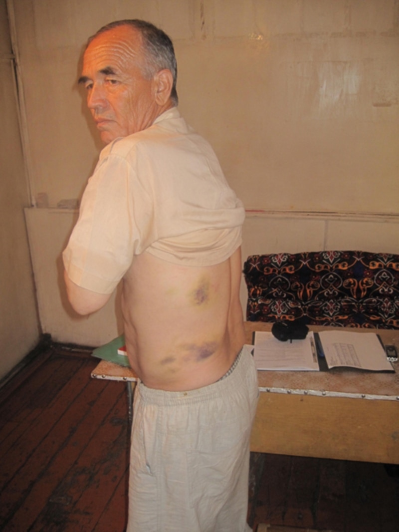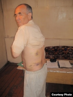 - Мал-жайды карап жүрсөм эшик такылдап калды. Жарандык кийимчен адам "мени тааныйсыңбы" деп сурады. Тааныбаганымды айтсам дароо колума кишен тагып, машинага салып кетти. Жанында эки формачан адам бар экен. Унаада эле желим таяктар менен ургулап киришти, "мойнуңа ал" деп. Ново-Павловканын ГОМуна алып баргандан кийин чечиндирип алып дагы сабашты. Бири кол кап кийип алып желим таяк менен бөйрөгүмө, башыма, таманыма уруп, кыйнашты.