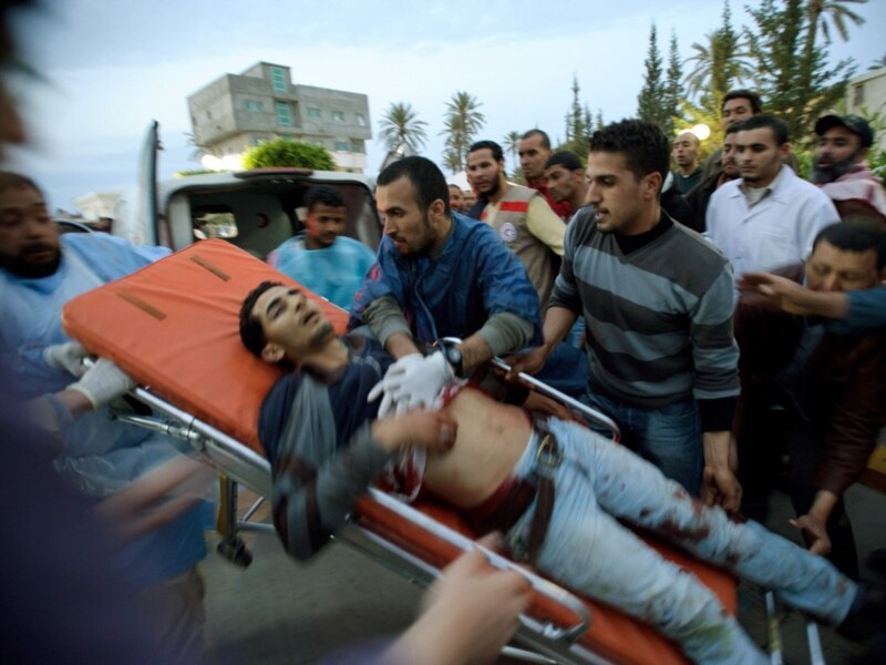Медиктер жарадар адаватчыны Мисрата шаарындагы ооруканага алып баратышат. 19-апрель 2011