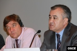 ЕККУ жыйынында Кыргызстан боюнча «Ата Мекен» фракциясынын лидери Өмүрбек Текебаев менен ЕККУнун Парламенттер ассамблеясынын Борбор Азия боюнча өкүлү Киммо Килюнен баяндама жасады, Вена, 24-25-феврал, 2011-ж