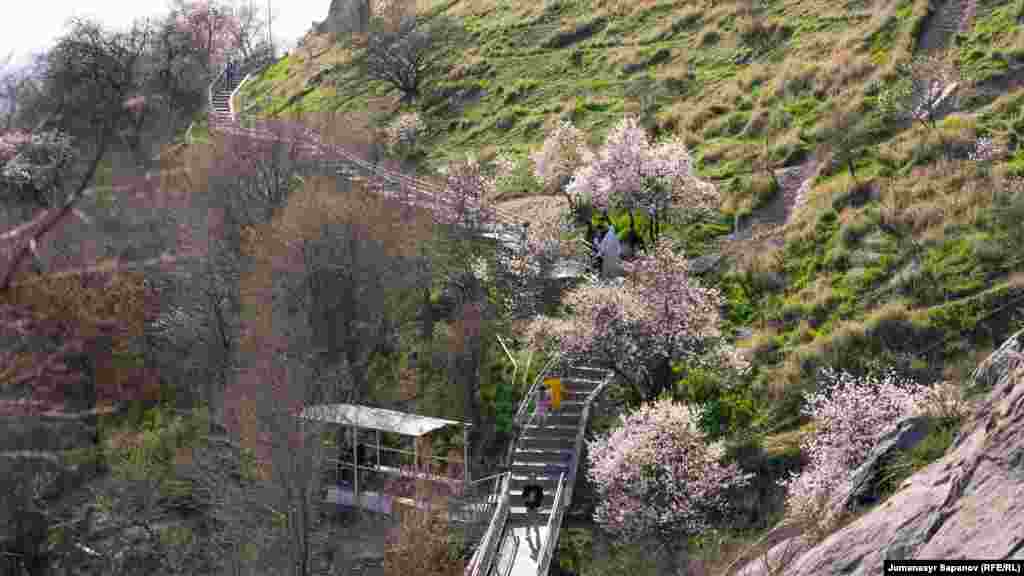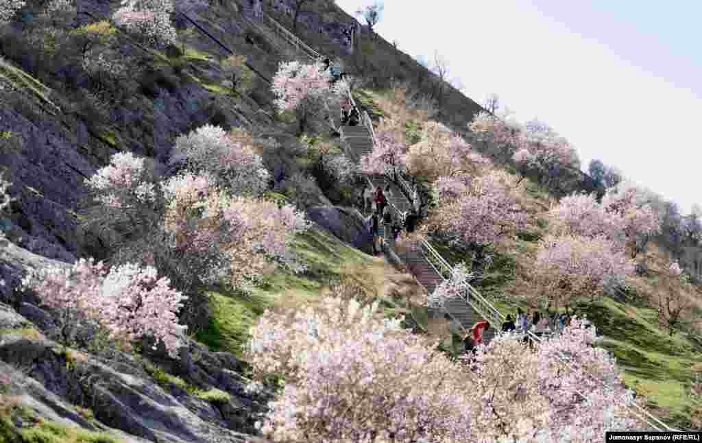 Жаз келип, Оштогу Сулайман-Тоого сейилдегени чыккандар көбөйдү. ЮНЕСКОнун Дүйнөлүк маданий жана жаратылыш мурастарынын тизмесиндеги Сулайман-Тоонун көркүн ачкан өрүк гүлдөрү жана табияттан ырахат алып жүргөн тургундарды “Азаттыктын” кабарчысы сүрөткө тартып келди.