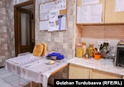 “Сезимдин” жетекчиси Бүбүсара Рыскулова жана адвокат Айсулуу Ибраимова сот залында. СүрөтGulzhan Turdubaeva (RFE/RL)